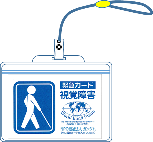 より早く、理解をしてもらうには、視覚障害者用、聴覚障害者用の安心安全カードを胸からさげていればより早く手助けしてもらうことができます。